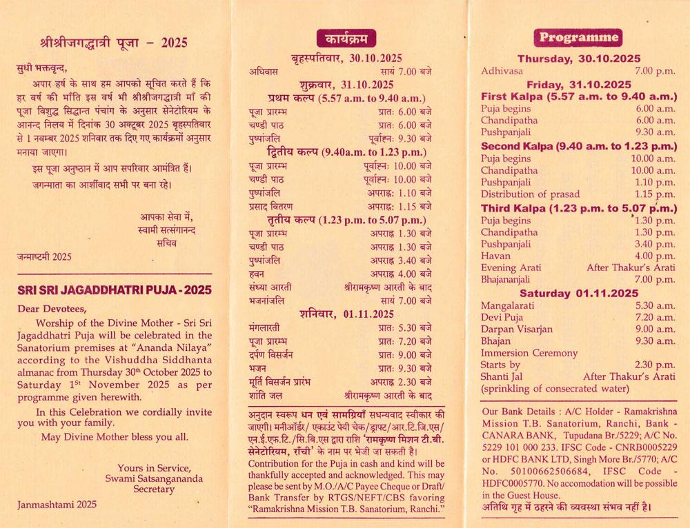 Sri Sri Jagaddhatri Puja 2025 Program Schedule